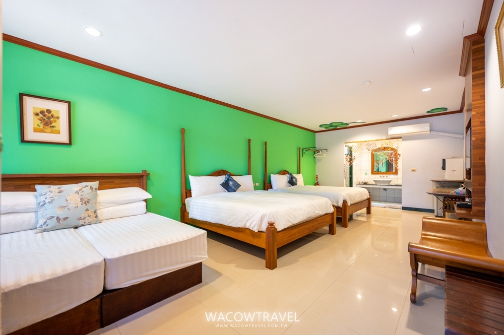 | 客房坪數 | 16坪| 入住人數 | 6人(不可加床)| 客房床型 | 6×7 尺加大床 x3 (一人一被)| 房間樓層 | 1樓