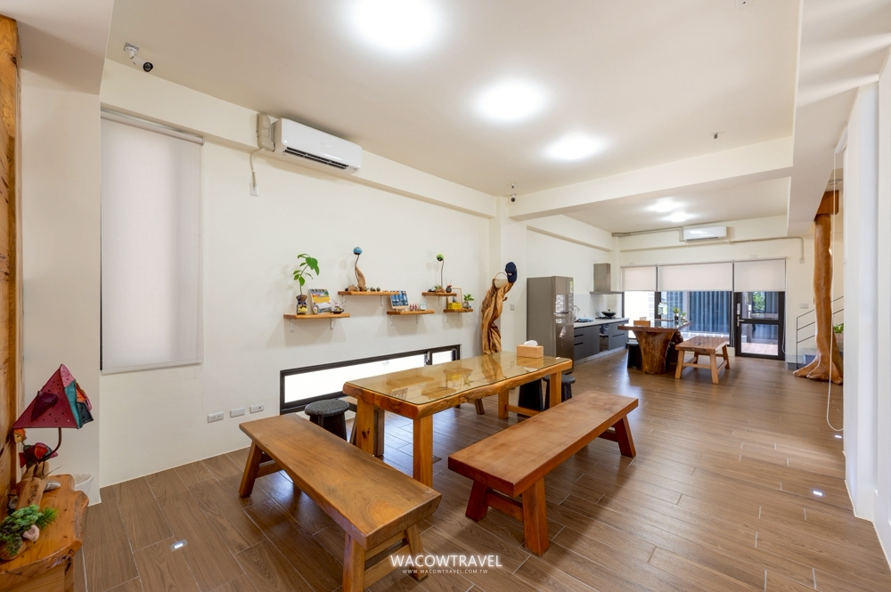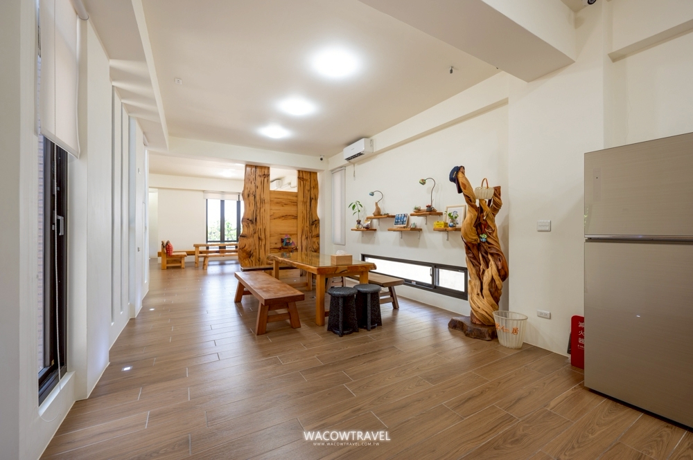 - 原木風的室內空間:全室以原木鋪陳,以台灣檜木、肖楠及龍柏呈現室內的自然及溫潤感。